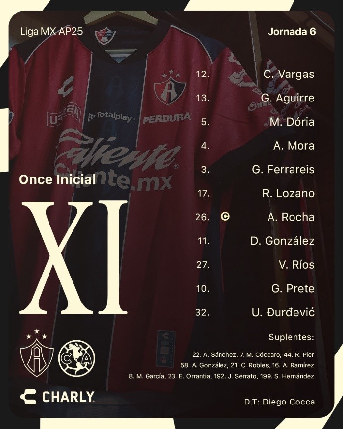 Deportes | Atlas vs América • Momentos Destacados • Jornada 6 • Apertura 2025 Atlas recibe al América en el Estadio Jalisco para cerrar la jornada 6 del Apertura 2025, con los Rojinegros urgidos de triunfo y las Águilas defendiendo su invicto Sergio Alejandro Velázquez 24 de agosto de 2025 - 18:15 hs ATLAS2 ‒ 4AMÉRICA Fin del partido El América logró una remontada emocionante frente a Atlas en un partido lleno de intensidad y emociones. Los azulcremas abrieron el marcador desde el penal con Brian Rodríguez, pero Gustavo Del Prete empató para los Zorros antes del descanso con un potente disparo desde fuera del área. Ya en la segunda mitad, Diego González adelantó nuevamente a Atlas con un remate dentro del área, poniendo el 2-1 y parecía que los locales podrían llevarse la victoria. Sin embargo, el América reaccionó con fuerza. Álvaro Fidalgo igualó el marcador a los 74 minutos, y en los últimos minutos Allan Saint-Maximin y Víctor Dávila firmaron la remontada con dos goles que sellaron el 4-2 final para las Águilas, dejando una jornada inolvidable para los aficionados y demostrando la resiliencia del equipo visitante. 90+7' ¡América incrementa la ventaja! Víctor Dávila transforma el penal tras el rebote de Camilo Vargas y pone el 4-2 definitivo a favor de las Águilas, sellando una remontada espectacular en los últimos minutos. ¡Penal para el America! ‼️ Víctor Dávila anota el cuarto tras un rebote de Camilo Vargas✨⚽ #LigaMX #Clasicodelaamistad pic.twitter.com/OVSco5Y5vH — TUDN MEX (@TUDNMEX) August 25, 2025 90+5' Penal en favor de América El árbitro indica la pena máxima para el Atlas tras un contacto dentro del área del conjunto local. 90' Se agregan 7 minutos al segundo tiempo 89' ¡Gooooooooool del América! Allan Saint-Maximin remata de derecha desde el centro del área y le da la vuelta al marcador en su debút con las Águilas. América ahora gana 3-2 sobre Atlas a poco del final del partido. ¡GOOOOOOL DE MAXIMIN! ¡DEBUT DE ENSUEÑO! ✨ Saint Maximin debuta con gol con el América y le está dando la victoria‼️ #LigaMX #Clasicodelaamistad pic.twitter.com/0udyVtw97A — TUDN MEX (@TUDNMEX) August 25, 2025 87' Otro cambio en el América Sale Ramón Juárez, entra Víctor Dávila. 82' Roja para Atlas Aldo Rocha recibe la segunda amarilla por una falta sobre Érick Sánchez y es expulsado. Atlas se queda con 10 jugadores en el campo. 81' América también con una modificación Sale Alejandro Zendejas, entra Isaías Violante. 78' Cambio en Atlas Sale Gustavo del Prete, entra Sergio Hernández. 73' ¡América empata el partido! Álvaro Fidalgo iguala el marcador con un remate de derecha desde el centro del área. Ahora, Atlas y América están 2-2 en un partido que sigue lleno de emociones. ¡Golazo de América! ‼️⚽ El Maguito sacó la magia y las Águilas empatan el marcador✨ #LigaMX #Clasicodelaamistad pic.twitter.com/shNSBz2L2K — TUDN MEX (@TUDNMEX) August 25, 2025 66' Malagón frena a los Rojinegros Uros Djurdjevic vuelve a hacerse presente en el área de las Águilas, pero Luis Ángel Malagón responde con una atajada decisiva sobre la línea, evitando que Atlas amplíe su ventaja. 62' América realiza cambios Salen: Brian Rodríguez, Rodrigo Aguirre y Dagoberto Espinoza. Entran: Allan Saint-Maximin, José Zúñiga y Kevin Álvarez. ¡Paren todo! Saint Maximin está debutando con el Club América al 62' #LigaMX #Clasicodelaamistad pic.twitter.com/dd7hrh28EA — TUDN MEX (@TUDNMEX) August 25, 2025 59' Anulan el tercer gol de Atlas Tras la revisión del VAR, se anula el gol de Djurdjevic por posición adelantada. El marcador se mantiene 2-1 a favor de Atlas sobre América. 56' ¡Gooooool del Atlas! Uros Djurdjevic amplía la ventaja con un certero cabezazo dentro del área, colocando el balón pegado al poste izquierdo tras el centro de Gaddi Aguirre. Los Zorros ya lo ganan 3-1 frente al América. ¡GOOOOOL DEL ATLAS... ANULADO! ❌ #LigaMX #Clasicodelaamistad pic.twitter.com/fQSHsJasTA — TUDN MEX (@TUDNMEX) August 25, 2025 49' ¡Atlas le da la vuelta al partido! Diego González aparece en el área y, con un zurdazo tras un centro de Rivaldo Lozano, manda el balón al fondo de la red. Los Zorros le dan la vuelta al marcador y ahora ganan 2-1 sobre América. ¡Gol del Atlas! Golazo de Diego González y el Rojinegro se va arriba en el marcador ✨⚽ #LigaMX #ClasicoDeLaAmistad pic.twitter.com/N21bxpl2pw — TUDN MEX (@TUDNMEX) August 25, 2025 Comienza el segundo tiempo Ambos equipos regresa del descanso sin modificaciones Se termina la primera mitad El primer tiempo estuvo marcado por el dominio inicial del América, que abrió el marcador con un penal bien ejecutado por Brian Rodríguez y mantuvo la presión sobre un Atlas replegado. Sin embargo, cuando parecía que los azulcremas se irían con ventaja al descanso, Gustavo Del Prete sorprendió con un disparo de larga distancia en el tiempo agregado para decretar el 1-1 al medio tiempo. 45+1' ¡Gooooool del Atlas! Gustavo Del Prete iguala el marcador con un potente disparo de derecha desde fuera del área. El balón se incrusta en la portería y pone el 1-1 justo antes del descanso. ¡GOOOOL DEL ATLAS! ¡Golazo enfermo de Del Prete! El Atlas empata con esta obra de arte ⚽ #LigaMX #Clasidodelaamistad pic.twitter.com/PTqpXAsGIh — TUDN MEX (@TUDNMEX) August 25, 2025 45' Agregan 5 minutos al primer tiempo 40' Atlas empieza a despertar Atlas empieza a mover el balón con mayor confianza y le arrebata poco a poco la posesión al América. Aunque todavía no genera ocasiones claras, el equipo local comienza a hacerse sentir en el partido. 28' Atlas no logra quitarle protagonismo a las Águilas América controla la posesión y Atlas sigue sin generar peligro al frente. Con la presión constante del cuadro visitante, los Zorros permanecen replegados y un segundo gol de América parece cada vez más inminente. 21' ¡América abre el marcador! Brian Rodríguez abre el m