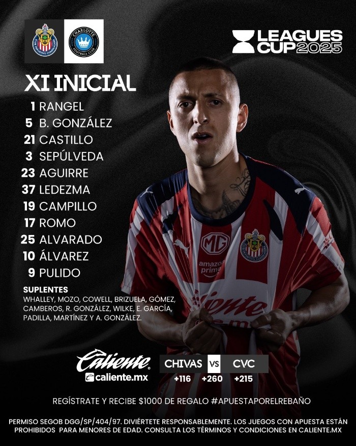 Deportes | Chivas vs Charlotte • Momentos Destacados • Jornada 2 • Leagues Cup La Leagues Cup 2025 continúa con un enfrentamiento clave entre Chivas de Guadalajara y Charlotte FC Sergio Alejandro Velázquez 3 de agosto de 2025 - 15:45 hs CHIVAS2 ‒ 2CHARLOTTE Chivas consigue el punto extra ante Charlotte en penales Chivas se impuso desde los once pasos y venció a Charlotte FC por 4-2 en la tanda de penales, asegurando así el punto extra tras el empate 2-2 en tiempo regular. Termina el segundo tiempo Concluyen los 90 minutos con un empate 2-2 entre Chivas y Charlotte FC. Tras un duelo lleno de intensidad, goles y emociones, el reglamento de la Leagues Cup dicta que se definirá un punto extra en la tanda de penales, donde ambos equipos buscarán llevarse la ventaja adicional en esta segunda jornada del torneo. 90+1' ¡Charlotte empate el partido! Kerwin Vargas apareció con un golazo agónico. El atacante de Charlotte FC aprovechó un descuido defensivo y definió con precisión para marcar el 2-2 en el tiempo de compensación, devolviendo la igualdad en el marcador. WHAT A GOAL! ��⚽️ Vargas surprise the goalkeeper and ties the game with a free kick for Charlotte!#LeaguesCup2025 pic.twitter.com/IpPdaV7ySD — Leagues Cup (@LeaguesCup) August 4, 2025 90' Agregan 5 minutos al segundo tiempo 86' Más modificaciones en Chivas Salen: Bryan González y Efraín Álvarez. Entran: Miguel Gómez y Cade Cowell. 75' Cambios en el Rebaño Salen: Roberto Alvarado y Alan Pulido. Entran: Yael Padilla y Armando González. 66' ¡Goooooool de Chivas! Alan Mozo mandó un centro al área y Bryan González apareció en el momento justo para conectar un remate de cabeza que venció al arquero, poniendo el 2-1 a favor de Chivas. ¿De palomita? ¡De 'Cotorro'! ��⚽️ Great header de Bryan González y @Chivas ya le dio la vuelta al partido#LeaguesCup2025 pic.twitter.com/qZBAdeMfGo — Leagues Cup (@LeaguesCup) August 4, 2025 64' Chivas realiza un cambio por lesión Sale Richard Ledezma, entra Alan Mozo. 58' Álvarez se queda a nada Efraín Álvarez estuvo cerca de marcar el segundo para el Rebaño con un tiro libre peligroso que rozó el poste. El disparo superó la barrera y generó expectación, pero el balón terminó saliendo apenas por un costado. 50' El Rebaño retoma la insistencia Chivas vuelve al campo con intensidad en el arranque del segundo tiempo, presionando con fuerza la portería de Charlotte. Los rojiblancos se muestran decididos a tomar la delantera, adelantando líneas y buscando constantemente el arco rival en busca del segundo tanto. Comienza el segundo tiempo Se termina la primera mitad Termina el primer tiempo con empate 1-1 entre Chivas y Charlotte FC. El Rebaño mostró iniciativa desde los primeros minutos, pero un error de Gilberto Sepúlveda al despejar provocó el gol en propia puerta que puso en ventaja a los rivales. Por su parte, Richard Ledezma logró emparejar el marcador con una buena definición. 45' Agregan 4 minutos al primer tiempo 37' Charlotte busca recuperar la ventaja Liel Abada mandó un disparo peligroso que buscaba complicar a Chivas, pero el "Tala" Rangel reaccionó a tiempo y rechazó con firmeza, evitando la amenaza sobre su arco. 24' ¡Chivas empata el partido! Richard Ledezma aparece en el momento justo para empatar el encuentro. Con una definición certera, el jugador rojiblanco pone el 1-1 en el marcador. ¡GOLAZO de @Chivas! ��⚽️ Richard Ledezma with a long distance cañonazo para empatar el partido#LeaguesCup2025 pic.twitter.com/GyJ57UOPKP — Leagues Cup (@LeaguesCup) August 4, 2025 15' Efraín Álvarez busca el empate Álvarez se animó con un potente disparo desde fuera del área, buscando sorprender al arquero rival, pero David Bingham reaccionó y evitó el gol de los rojiblancos. 11' Charlotte abre el marcador Gilberto Sepúlveda comete un grave error al intentar despejar un balón dentro del área; en su intento por alejar el peligro, termina desviando la esférica hacia su propia portería. Con esta acción, Charlotte aprovecha y abre el marcador, tomando la delantera en el encuentro. Oh, no! ��⚽️ Own goal from Tiba Sepúlveda and @CharlotteFC se va adelante en el marcador!#LeaguesCup2025 pic.twitter.com/K1lXGv8nUy — Leagues Cup (@LeaguesCup) August 4, 2025 5' Chivas comienza generando jugadas El Guadalajara acumula intentos en busca de generar oportunidades que lo acerquen al arco rival. Aunque aún no logra concretar una jugada de verdadero peligro, el Rebaño comienza a evidenciar su intención de tomar la iniciativa en el encuentro. Arranca el partido El árbitro da el silbatazo y el balón comienza a moverse sobre el terreno de juego. Previa del partido La Leagues Cup 2025 continúa con un enfrentamiento clave entre Chivas y Charlotte FC, dos equipos urgidos de triunfo tras un mal inicio en el torneo. Chivas cayó 1-0 ante New York Red Bulls con un gol en los últimos minutos, mientras que Charlotte fue goleado 4-1 por Bravos de Juárez, por lo que ambos llegan presionados a este compromiso. El duelo se jugará el domingo 3 de agosto a las 17:50 horas (centro de México) en el Bank of America Stadium, en Charlotte, Carolina del Norte. Una derrota podría significar la eliminación para cualquiera de los dos clubes. ¿Cuándo y dónde ver el Chivas vs Charlotte? El partido se podrá ver en vivo por Canal Nueve, TUDN, y en streaming a través de MLS Season Pass y Apple TV+. SV Alineación de Chivas Temas Chivas Leagues Cup Futbol Internacional Lee También Chivas se impone ante Charlotte en penales, pero complica su pase a la siguiente fase Ya deslumbró, ahora hay que consolidarse: Gonzalo Pineda sobre Sergio Hernández Leagues Cup: Pumas gana, pero pierde a Keylor Navas; el América sigue con vida Futbol hoy 3 de agosto de 2025: ¿Dónde ver los partidos en vivo?
