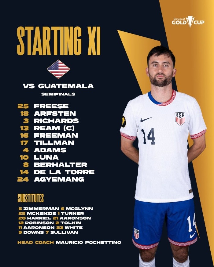 Estados Unidos y Guatemala se enfrentan esta tarde en busca de obtener el boleto a la final de la Copa Oro 2025