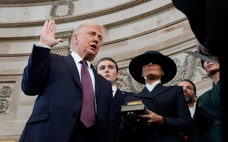 Firme, provocadora y mesiánica. Esa fue la rúbrica que impuso en su discurso el republicano Donald Trump al asumir por segunda ocasión la presidencia de Estados Unidos.Aseguró que la“edad de oro de Estados Unidos comienza ahora mismo”, en una toma de posesión que estuvo rodeada de multimillonarios y dueños de las principales plataformas de redes sociales. Y frente a ellos y sus rivales demócratas, a quienes no dudó en criticar aún teniéndolos al lado, sostuvo que “terminó el declive” de ese país, y fue a más al asegurar que el 20 de enero de 2025 es “el día de la liberación”. “Desde este día, nuestro país florecerá y será respetado nuevamente en todo el mundo. Seremos la envidia de todas las naciones y no permitiremos que sigan aprovechándose de nosotros nunca más. Cada día de la Administración Trump pondré a Estados Unidos primero, a ustedes”, declaró.Sin ánimos de cambio en su discurso confrontativo, Trump dijo que su primera acción sería declarar emergencia nacional en la frontera sur, que los cárteles de la droga mexicanos serán considerados terroristas e insistió en su idea de cambiar el nombre al Golfo de México por Golfo de América. “Estados Unidos será pronto más grande, más fuerte y mucho más excepcional que nunca antes”, aseveró segundos después de declarar una emergencia energética para extraer más petróleo del subsuelo, echar por la borda la política de vehículos eléctricos e insistir con un mejor trato con el Canal de Panamá, país que se ha opuesto determinantemente a que se insista con esa medida.Dijo que se negará la ciudadanía a los hijos de inmigrantes indocumentados nacidos en territorio estadounidense; es decir, modificar la interpretación constitucional que establece que toda persona nacida en suelo estadounidense obtiene automáticamente la nacionalidad, independientemente del estatus migratorio de sus padres.También recordó el intento de asesinato que sufrió el año pasado durante la campaña electoral y aseguró que Dios lo salvó. “Sentí entonces, y lo creo aún más ahora, que mi vida fue salvada por una razón. Fui salvado para hacer grande de nueva cuenta a Estados Unidos”, declaró.Por cierto, previo a dejar el cargo, Joe Biden indultó al médico Anthony Fauci, al general retirado Mark Milley y a los miembros de la comisión de la Cámara de Representantes que investigó el asalto al Capitolio del 6 de enero de 2021, ejerciendo los extraordinarios poderes de su cargo para protegerlos de una posible “venganza” por parte del gobierno entrante.Francisco Aceves González, doctor en Ciencias Sociales e investigador de la Universidad de Guadalajara (UdeG), expuso que el discurso de Donald Trump confirmó sus tintes populistas y lo colocó como un “mesías”, pues “por una parte empezó diciendo que Estados Unidos ha sido un desastre, pero que éste va renacer a partir de su llegada”.El analista internacional y miembro del Consejo de Relaciones Exteriores de Estados Unidos, Rodrigo Aguilar, explicó que el mensaje de Trump expuso claramente cuáles serán las áreas de preocupación para México: migración, aranceles y comercio. Concluyó que debe ponerse atención a las políticas intevencionistas que podrían haber detrás de haber declarado a los cárteles como “organizaciones terroristas internacionales”."Pero en sí, la amenaza más importante y más directa hacia un País fue la que hizo contra Panamá. Dedicó un gran tiempo de su discurso para hablar del canal de Panamá, de cómo 30 mil americanos se murieron construyéndolo, cómo fue un mal acuerdo entre Estados Unidos y Panamá en ese momento, y cómo China se está beneficiando de algo que construyó Estados Unidos. Entonces, en particular, no hay que obviar el tema del Canal de Panamá, me parece algo muy estratégico para fines políticos y comerciales de Estados Unidos, y me parece que el que en su discurso lo mencione de manera inmediata y prioritaria significa que vienen cambios muy importantes en ese particular País.Por otra parte, el internacionalista destacó que si bien en el tema político habrá pendientes por resolver, es favorable el que a las cenas de gala y reuniones previas con el presidente y sus allegados asistieran grandes empresarios de alto renombre en México, como los Slim, empresarios de Grupo Salinas e incluso, Altagracia Gómez Sierra, además de una gran delegación de empresarios regiomontanos."Esto creo que es buena señal. Llevo cuatro tomas de protestas presidenciales (de EU) y esta es la primera vez que veo tantos asistentes respecto al sector del privado, con muy buen nivel. Esto es de destacarse como un elemento esperanzador, es un motivo de estar relativamente optimistas en el tema comercial y de negocios entre México y Estados Unidos", afirmó Aguilar Benignos, quien estuvo asistiendo a dichas reuniones.Empresario y político quizás sean las facetas mejor conocidas de Donald Trump, pero tiene una más que sin desempeñarla profesionalmente, la suele desplegar con maestría: actor.Experto en encender a las masas, polarizar y endulzar el oído a sus votantes, Trump desplegó ayer todas sus cualidades histriónicas, con las que aderezó las primeras horas de una presidencia que promete ser trepidante, tanto por su carácter como por las acciones que planea emprender.Ayer, en cuanto tomó el micrófono en la toma de posesión en el Capitolio, comenzó a desplegar la doctrina que imprimirá en su administración, que podría resumirse en tres palabras: “Estados Unidos primero”.Con gesto adusto al principio, recordó en su discurso el evento que para muchos le ayudó a catapultar su campaña por los cielos: “Hace unos meses, en un bonito mitin de Butler (Pensilvania), un grupo de asesinos me perforó la oreja. Pero mi vida se salvó por algo: Dios me salvó para hacer a Estados Unidos grande de nuevo”.Este impulso divino lo llevó a una arrolladora victoria en las elecci