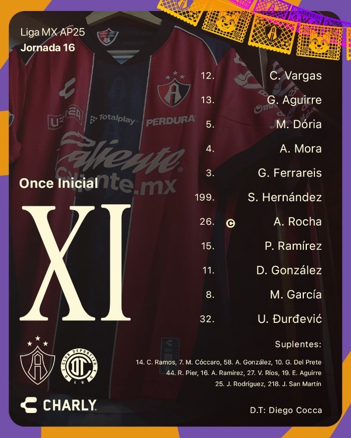 Este sábado continuará la jornada 16 del Torneo Apertura 2025 de la Liga MX, con un duelo clave entre los Diablos Rojos del Toluca y los Rojinegros del Atlas. El conjunto visitante buscará consolidarse en la cima de la tabla y mantener el paso firme rumbo a la liguilla, mientras que los tapatíos tratarán de mantenerse con vida en la pelea por un lugar en el Play-In.