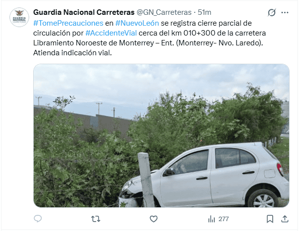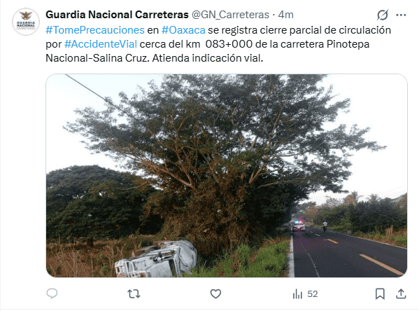 Publicación de la Guardia Nacional. X / @GN_Carreteras