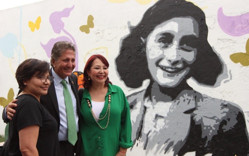 La mañana de este jueves 9 de junio, el Presidente Municipal de Zapopan, Juan José Frangie, inauguró un mural en memoria de Ana Frank creado por artistas del programa ZapopArt en el parque incluyente El Polvorín, evento en el que el alcalde aseguró que “a través de la cultura y a través de los lazos con todos los países y comunidades es como nosotros creemos que se va a integrar otra vez el tejido social”; de esta forma, destacó la necesidad de trabajar por un municipio de iguales, donde todas y todos tengan los mismos derechos sin importar su origen, sus creencias o preferencias.El mural de Ana Frank que se inauguró fue realizado en conmemoración de su cumpleaños número 93, por parte de los artistas de ZapopArt: Juan Diego, Alejandro Navarrete y Daniela Mayorga. Es una obra que demuestra de manera alegre y colorida la luz que se vivió después de la represión que vivió la comunidad judía el pasado siglo.Esta es una de las actividades con las que el gobierno municipal de Zapopan refrenda su compromiso de educar sobre las causas y las consecuencias de los delitos, así como fortalecer la resiliencia de los jóvenes contra las ideologías de odio. En este sentido, estableció Frangie, “creo que la comunidad judía es un ejemplo a seguir de valentía, de entrega, trabajo y bondad”.Por otra parte, en una actividad realizada con la finalidad de transmitir los valores del respeto y la tolerancia como precursores de la paz, la coordinadora general de Construcción de Comunidad, María Gómez Rueda, refirió que “una de las cosas que siempre nos ha recalcado el presidente municipal es ser un gobierno que escuche; y trabajar y trabajar todos los días para ser un gobierno que represente a todas y todos los zapopanos que habitamos nuestra ciudad. El ejemplo y lo simbólico que me parece estar inaugurando este mural en este espacio es un tema de congruencia, es saber que estamos gobernando con este objetivo”.Ahora bien, la representante de la comunidad hebrea, María Elena Miranda de Moel, comentó: “no queríamos que fuera un mural triste o trágico, queríamos recordar a Ana con esa famosísima fotografía de su diario. Por lo tanto, los artistas plasmaron el rostro de Ana por un lado y una frase de las muchas que ella escribió en sus apuntes que transmite fe en la humanidad y esperanza y, por el otro lado, unir estas dos imágenes con niños y color”.El parque El Polvorín fue el primer espacio creado en Zapopan con juegos infantiles incluyentes dedicado a niñas y niños con discapacidad; está ubicado en los cruces de avenida Patria y la calle Miguel León Portilla. CF