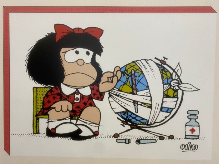 Ya no son necesarios los motivos para explicar por qué Mafalda es uno de nuestros grandes ídolos, un icono de América Latina, y un referente en el universo de la literatura y la novela gráfica. Este jueves 30 de diciembre, durante la Feria Internacional del Libro de Guadalajara, se llevó a cabo la inauguración de la quinta edición presencial del Salón del Cómic y la Novela Gráfica, en homenaje a la Mafalda, la niña que desde 1964 cambió y sigue cambiando al mundo, y su autor, Joaquín Salvador Lavado, Quino. El stand estaba abarrotado con la presencia de adolescentes, estudiantes y adultos de todas las edades que invadieron las gradas, se sentaron en el piso y en todo lugar donde había espacio, y que incluso resistieron casi una hora en pie para el homenaje del caricaturista argentino. La temática de Quino y de Mafalda estaban presentes, con imágenes del universo que miles de personas han llegado a amar, y con el que se han identificado a lo largo de más de medio siglo en el que Mafalda se inmortalizó en América Latina y en el mundo. El evento volvió a contar con la presencia de Daniel Davinsky, el editor de Mafalda y amigo de Quino, y que apenas este pasado domingo se presentó junto a Benito Taibo en conmemoración de la historieta de la niña despeinada que cambió al mundo. También estuvieron presentes la dibujante chilena, Catalina Bu, y el talento tapatío e indispensable en la FIL, Trino Camacho. Marisol Schulz, directora general de la FIL Guadalajara, dio inicio a la ceremonia, y agradeció a los asistentes por la quinta edición presencial del Salón del Cómic y la Novela Gráfica. “Este espacio hacía falta, porque entendíamos lo que el público joven estaba necesitando, y ya llevamos cinco años”. Explicó la relevancia contemporánea de las nuevas maneras de leer, en las que la novela gráfica implica un nuevo aproximamiento a la literatura. El Salón del Cómic y la Novela Gráfica, como tal, se inaugura el jueves de cada edición de la FIL. “Este es un homenaje a Quino, pero también a quien la dio a conocer: Daniel Divinsky”, finalizó Marisol Schulz. Trino Camacho agradeció al público, y como más de la mitad de los asistentes, se confesó fanático de Mafalda. Catalina Bu, la caricaturista e ilustradora chilena, por su parte, encontró muy necesario que cada vez se abran más espacios para la presencia femenina en el mundo de la historieta y la novela gráfica, y explicó lo que Mafalda representaba en su vida. “En Quino y Mafalda realmente había posibilidades de cosas que no eran superhéroes americanos -pues eso es lo que leíamos en las historietas de los periódicos-, sino de la familia, de los amigos, de la crítica social, desde la vista de una niña, de una mujer. Poder abordar la crítica desde la cotidianidad, y con humor”. Trino, por su parte, se confesó no sólo fan de Mafalda, sino fan de Quino como tal, de ese humor suyo, más mordaz y filosófico, que si bien está presente en Mafalda, tiene una desenvoltura distinta en el resto de su universo de historietas. Reconoció el valor de la historieta como un instrumento que critica la política y lo establecido, “el dibujo tiene esa fuerza y esa posibilidad de incomodidad al poder”, y que Quino también logró con su arte. Trino recordó aquella ocasión en la que le preguntó a Quino en persona las razones por las cuales había decidido matar a Mafalda con un camión de sopa. Quino lo fulminó con la mirada, y descartó que aquel rumor fatídico, únicamente conocido en México, fuera cierto. “Ustedes los mexicanos son unos chismosos”, dijo. Pues, de algún modo, en México existe el mito urbano de que la historia de Mafalda finalizó con su muerte, atropellada por un infame camión de sopa, una de las cosas que ella más odiaba en el mundo, además de las injusticias. La tira como tal es apócrifa, pero de algún modo incomprensible, ampliamente creída en México. Daniel Divinsky, el editor de Mafalda, antiguo y solemne volvió a conmocionar los ámbitos. Cada mención a él bastaba para una nueva ronda de aplausos. Divinsky agradeció la larga historia de Mafalda en la FIL, y reconoció el gran legado de Quino en su vida. “Quino no solamente era un humorista, era un filósofo a través del humor”, finalizó Divinsky.YC
