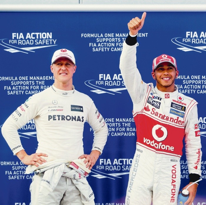 Hasta Lewis Hamilton creía que el récord de 91 victorias de Michael Schumacher era imbatible. Ahora lo ha igualado.El hijo de Schumacher, Mick, regaló a Hamilton uno de los viejos cascos de su padre luego de que el británico igualó el récord del ex piloto alemán en el Gran Premio de Eifel.“Viendo su dominio, no creo que nadie, y especialmente yo, se imaginó que estaría cerca de Michael en términos de récords así que es un honor increíble y me va a tomar tiempo acostumbrarme”, comentó Hamilton y añadió que solía elegir a Schumacher como su personaje en un videojuego.“Ese número es tan grande y cuando está tan lejos es difícil que la gente pueda entender por completo lo complicado que fue para él obtener esas 91 victorias, y entregar resultados cada fin de semana, año tras año y mantenerse tan físicamente en forma y tan preciso. Así que puedo entender eso ahora más que nunca”, señaló Hamilton.“Y sólo puedo decirles que no se hace más fácil desde tu primera victoria hasta la 91. Se los digo, ha sido un camino largo y complicado”, añadió.Hamilton también se puso más cerca de igualar el récord de Schumacher de siete títulos luego de que su coequipero Valtteri Bottas no terminó la carrera por un problema de motor. Hamilton lidera el campeonato por 69 puntos de diferencia con seis carreras restantes.El británico se llevó la victoria 4.5 segundos por delante de Max Verstappen de Red Bull, con el tercer sitio para Daniel Ricciardo en el primer podio de Renault desde 2011 y el primero para él desde su victoria en el Gran Premio de Mónaco de 2018.Hamilton arrancó detrás de su coequipero de Mercedes, Valtteri Bottas, pero se puso al frente cuando el finlandés se abrió en la vuelta 13. Bottas se retiró por un problema en el auto cinco vueltas después.Con seis Grandes Premios todavía en el programa este año, el británico de 35 años tiene aparentemente otras victorias por delante con Mercedes. Detrás del dúo aparece Sebastian Vettel, pero a mucha distancia, con 53 triunfos en 252 Grandes Premios.Otro récord cayó cuando Kimi Raikkonen empezó su carrera número 323, superando la marca impuesta por Rubens Barrichello desde 1993 hasta 2011.Raikkonen terminó en el sitio 12 luego de que recibió una penalización de tiempo tras chocar con George Russell y provocar que el piloto de Williams hiciera un trompo. Russell se retiró por un pinchazo poco después.Fue la primera carrera de la F1 en el circuito de Nurburgring, en Alemania, desde 2013.1. Lewis Hamilton 230 puntos 2. Valtteri Bottas 161 puntos 3. Max Verstappen 147 puntos 4. Daniel Ricciardo 78 puntos 5. Sergio Pérez 68 puntos1. Mercedes 391 puntos 2. Red Bull 211 puntos 3. Racing Point 120 puntos 4. McLaren 116 puntos 5. Renault 114 puntosCon 91 victorias en la Fórmula Uno, el británico Lewis Hamilton igualó el récord de Michael Schumacher y va por una más.El “Kaiser” se retiró hace ocho años y dejó un par de marcas que parecían imposibles, pero de 2007 al presente, 14 temporadas como piloto y dos escuderías -McLaren y Mercedes-, el británico mantuvo su máximo nivel para por fin alcanzarlo.Hamilton necesitó 261 carreras para llegar a 91 victorias; Schumacher requirió 247 en 16 campañas.El inglés sumó 21 triunfos con McLaren y el resto con Mercedes; el alemán 19 con Benetton y 72 con Ferrari.Durante su trayectoria, el británico acumula 96 pole positions, mientras que el germano 68. De sus partidas desde el primer lugar de la parrilla, Hamilton ha ganado 56 (58%), mientras que Schumacher convirtió 37 de 68 (54%).Después de ganar su última carrera, en el GP de China de 2006, Schumacher todavía corrió otras 60, cuando hizo su regreso para correr con Mercedes, que apenas comenzaba a darse un nombre dentro de la máxima categoría.Hamilton todavía no tiene contrato para 2021, pero parece no tener prisa, sólo quiere llegar a los siete campeonatos mundiales al final de la campaña y empatar otra marca del alemán.JL