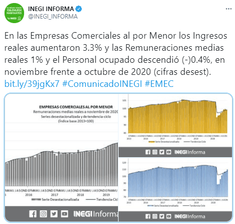 Gracias a la extensión de la campaña de El Buen Fin, en noviembre pasado las ventas minoristas tuvieron uno de sus mejores meses dentro del proceso de recuperación que inició en mayo, de acuerdo con los datos más recientes publicados por el Instituto Nacional de Estadística y Geografía (Inegi).Los ingresos reales por suministro de bienes y servicios de las empresas comerciales al por menor presentaron un alza de 3.3% en noviembre de 2020 respecto al mes inmediato anterior, más que compensando la baja de 0.2% reportada en octubre y superando el 1.2% estimado por los especialistas.Ocho de los nueve principales componentes de las ventas al menudeo tuvieron un crecimiento mensual, pero las ventas de productos textiles, las automotrices y las de artículos de ferretería fueron las que más se beneficiaron, pues crecieron por encima del índice general, explicó Daniel Arias, analista económico de Monex.A nivel de subcomponentes, 16 de 22 rubros incrementaron sus ingresos, destacando el avance de 5.4% mensual en las ventas de automóviles y camionetas, de 5.8% en las ventas de ropa y de 11.9% en las ventas de las tiendas departamentales. No obstante, estas últimas habían sufrido un desplome de 15.7% durante el mes de octubre, por lo que el alza del mes compensa solo parcialmente las pérdidas, agregó el especialista en su análisis.Pese al buen desempeño de las ventas al menudeo durante el penúltimo mes del año, se mantienen 4.7% por debajo de los niveles reportados un año antes. Solo cuatro de los componentes presentan ingresos superiores a los de hace un año, mientras que el resto presentan rezagos, en su mayoría de dos dígitos.NR