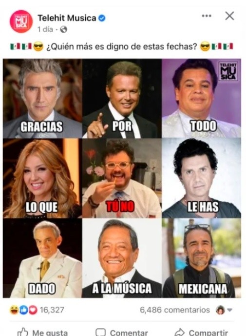 En sus redes sociales, Telehit compartió un meme sobre Aleks Syntek donde se hacía referencia a los aportes de diversos músicos como Juan Gabriel, Alejandro Fernández, entre otros, utilizando sus fotos, pero cuando llegaba la foto de Syntek, decía “Tú no”. El compositor externó su desacuerdo con un comentario.