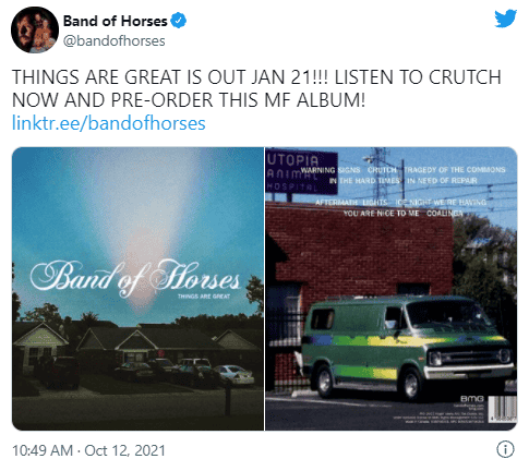 Tras más de cinco años sin publicar, la banda estadounidense Band of Horses ha anunciado hoy el que será su sexto álbum de estudio, "Things Are Great", que verá la luz el próximo 21 de enero de 2022 y cuyo primer tema, "Crutch", ya está disponible en todas las plataformas.Band of Horses, una de las bandas clave del indie rock actual, vuelve al sonido de sus primeros trabajos con este sexto álbum.Todas las canciones de "Things Are Great" fueron escritas antes de la pandemia, y en ellas Ben Bridwell, líder de la banda, se muestra más autobiográfico que nunca, según señala la discográfica BMG en una nota."Creo que, como muchas de mis canciones, 'Crutch' empieza con algo de mi vida real. Obviamente, hace referencia a algunas de las cosas de las que dependía. Supongo que me salió "I've got a crush on you" (Me gustas) y pensé que es gracioso cómo las relaciones son también muletas ('crutch')", dice Bridwell en la nota."Siento que todo el mundo ha pasado por etapas en las que nada va bien, pero tienes que aguantar y seguir adelante. Creo que ese sentimiento es el que te golpea en esta canción, aunque no conozcas los detalles", dice en referencia al primer tema del disco.Bridwell ha asumido una parte importante de la producción del nuevo trabajo, en el que produce o coproduce todos los temas. También han colaborado en el sonido Jason Lytle de Grandaddy, Dave Friedmann o Dave Sardy y el ingeniero Wolfgang "Wolfie" Zimmerman. AF