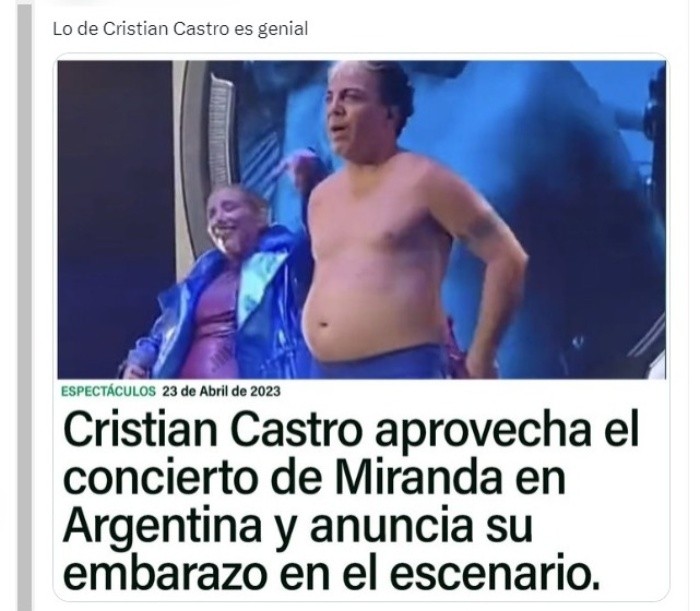 El cantante Christian Castro ha sido el centro de atención debido a una nueva polémica, pues se quitó la ropa en un concierto con el grupo argentino Miranda y su aspecto físico dio de que hablar en las redes sociales.