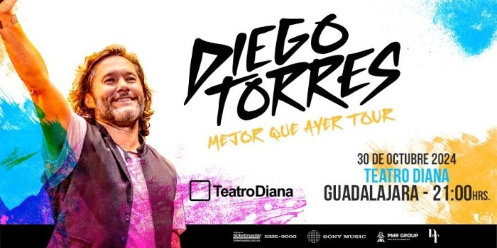 Por más de tres generaciones el músico, actor y cantante argentino, Diego Torres, se ha consagrado como unos de los exponentes más importante de la música en español en todo el mundo. Es así que el multifacético artista regresa a México para presentar su tour “Mejor que ayer”, en donde presentará un abanico de géneros y emociones que nadie sabe desplegar mejor que él.La cita en Guadalajara será el día 30 de octubre a las 21:00 horas en el Teatro Diana. Los boletos ya a la venta en Ticketmaster y taquillas del recinto. Nacido en Buenos Aires, Torres creció en una familia de músicos y comenzó su carrera a principios de la década de 1990 como actor en las populares telenovelas argentinas. Luego se trasladó a la música, lanzando su álbum debut "Diego Torres" en 1992, que fue un éxito instantáneo.Desde entonces, Torres ha lanzado más diez álbumes y ha vendido más de 20 millones de discos en todo el mundo. Ha ganado numerosos premios a lo largo de su carrera, incluidos dos premios Latin Grammy y varios premios Billboard de la música latina.MF