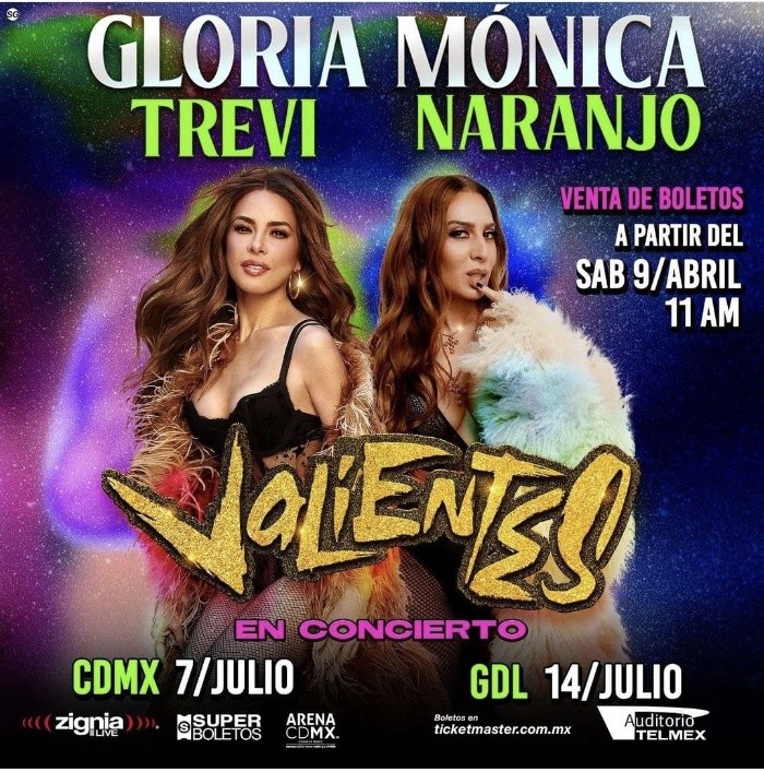 ¡A la comunidad LGBT le encantará esta noticia! Las divas del pop, Gloria Trevi y Mónica Naranjo ofrecerán un concierto el próximo 14 de julio en el Auditorio Telmex. El espectáculo lleva por nombre “Valientes” y previamente estará en la Arena Ciudad de México el 7 de julio en la CDMX.La venta de boletos para Guadalajara es por Ticketmaster, mientras que para la Arena Ciudad de México es por SuperBoletos.En su cuenta de Instagram, Gloria Trevi escribió: “Mi querida @monicanaranjo de verdad GRACIAS por ayudarme a mandar un mensaje tan hermoso! Un mensaje de poder, amor, igualdad, y tantas cosas q necesita este mundo. Es un honor entrelazar mi voz con tu voz para hacer algo #GRANDE en estos tiempos donde todos tenemos q ser #VALIENTES”.Mientras que Mónica también acotó: “Llevo años admirándote, no sólo como artista enorme, sino como mujer ejemplo de fuerza, resiliencia y generosidad… Para mí ya fue un regalo que compartieras conmigo esa maravilla de tema que es #GRANDE… Lo que anunciamos hoy para mí es otra enorme alegría!! Gracias, amiga!! Y a vosotros, sólo os digo que os preparéis para bailar!!!”.En 2019 las artistas precisamente grabaron el tema “Grande” y desde entonces habían advertido que seguirían preparando más sorpresas en conjunto. AC