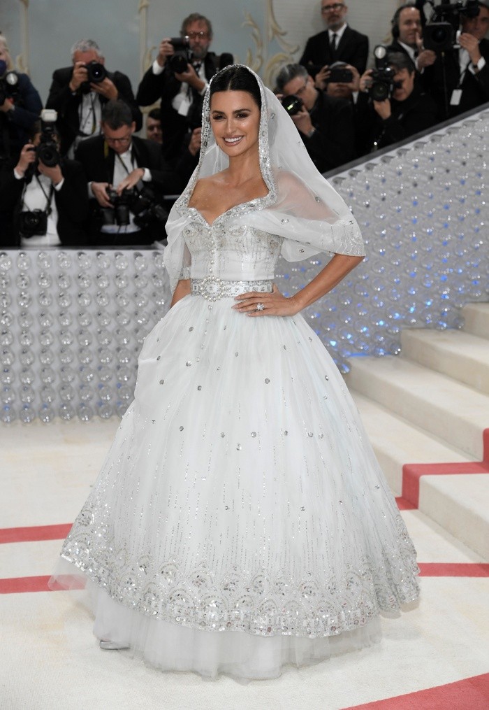 Una de las principales tendencias vistas en la Met Gala 2023, además del evidente homenaje a Chanel, fueron los vestidos nupciales: infinidada de vestidos blancos -largos y con cola, como vestidos de novia- perlas, encaje y velos.