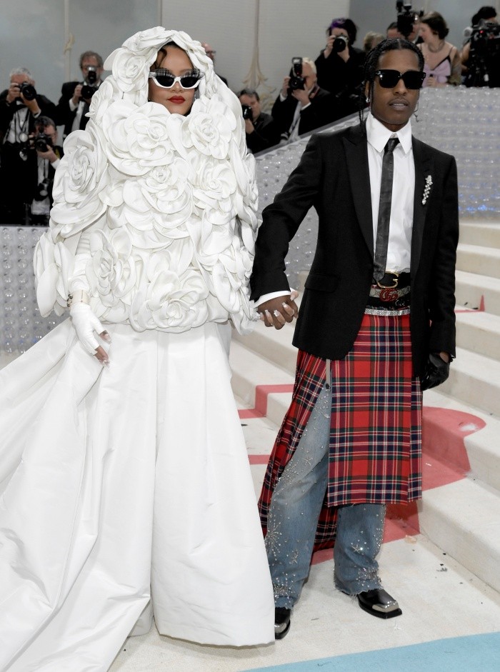 Rihanna y A$AP Rocky en la Met Gala 2023. AP/ Evan Agostini