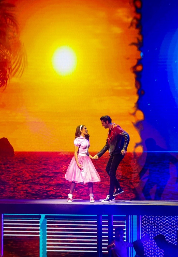 Gran fiesta musical se vivió en el Auditorio Telmex este sábado con las primera de dos funciones que ofreció el musical "Vaselina Timbiriche", producción de Alejandro Gou y Erik Rubín, donde un excelente ensamble llevó al público de Guadalajara a viajar en el tiempo para recorrer grandes exitos del rock ando roll.Durante la primera función, la de las 17:00 horas, se veía desfilar a chicas que lucieron outfits ad hoc a "Vaselina", el público en su mayoría eran señoras que disfrutaban de la reunión de Timbiriche, pues Mariana Garza, Diego Schoening, Benny Ibarra, Alix Bauer y Erik Rubín, marcaron varias generaciones con su musica, así es que con mayor alegría y diversión el público los arropó.La tecnología con la que cuenta el musical es de un excelente nivel, con grandes visuales que creaban atmósferas mágicas de la época de los 60 con la rebeldía y candidez de toda una generación. Además está la incorporación de un coche que le da mayor adrenalina al espectáculo. También el vestuario es de una excelente manufactura y el ensamble de bailarines es uno de los puntos clave para que el musical sea tan dinámico y ligero, haciendo lucir al elenco estelar donde también participan María León, Angélica Vale, Yahir, Kalimba, Alejando Ibarra, Verónica Jaspeado y Andrea Legarreta. La historia del musical es una trama que todos conocen, sin embargo, está adaptación nacional se tropicaliza desde la idiosincrasia mexicana tomando también como referencia a los grandes del rock and roll como Julissa, Angélica María, César Costa, Alberto Vázquez y Enrique Guzmán.María León se roba el show interpretando a la protagonista "Sandy", la gran calidad vocal y las habilidades físicas de la cantante, hacen que desarrolle una interpretación redonda. "Sandy" llega a la "Preparatoria Nacional" a estudiar y es cuando conoce nuevas amigas como "Chiquis", "Frenchie", "Licha", "Paty" y la temible "Sonia" a quienes les cuenta que vivió el mejor verano de su vida al conocer a un apuesto joven, lo que no sabe es que ese chico, llamado "Danny" (Benny Ibarra), también estudia en la misma escuela.Así que una vez que descubren que están en la misma preparatoria, los malentendidos comienzan a suceder al tiempo en el que ellos y sus amigos comienzan a prepararse para el baile escolar, donde además, el público tiene la oportunidad de conocer las historias de vida de todos y cada uno de los personajes. El público disfrutó mucho del montaje, riéndose y disfrutando de grandes números musicales como los de Angélica Vale con "Freddy, mi amor", Erik Rubín con "El rock nació conmigo" y María León con "Hopelessly devoted to you" en su versión en español, también Mariana Garza ofreció uno de los momentos más emocionales del montaje a través de su personaje "Sonia". Sin duda el público de Guadalajara quedó muy complacido con "Vaselina Timbiriche".NA