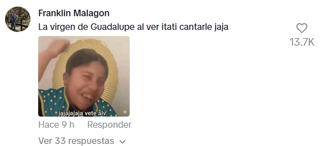 En vísperas del 12 de diciembre, Itatí Cantoral regresó a la Basílica de Guadalupe provocando una oleada de memes. La actriz mexicana publicó un video de apenas 17 segundos en el que se muestra en las afueras del recinto modelando un largo vestido negro con vivos de flores. El texto que acompaña la publicación dice lo siguiente:"Feliz de poder venir a cantar con toda mi familia a la Virgen de Guadalupe en su día" expresó Cantoral a través de su cuenta oficial de TikTok. La interacción con los usuarios de la plataforma ya muestra más de 60 mil "me gusta", poco menos de 500 comentarios y más de mil "guardados". Por supuesto, dichoSin embargo, la reacción de memes se centra en el episodio de 2016 que suele hacerse viral en esta fecha en memoria de cuando la artista interpretó "La Guadalupana" durante las famosas Mañanitas a "la patrona de México".A continuación te mostramos las mejores reacciones al TikTok de Itatí Cantoral.* * * Mantente al día con las noticias, únete a nuestro canal de Whatsapp * * *OB