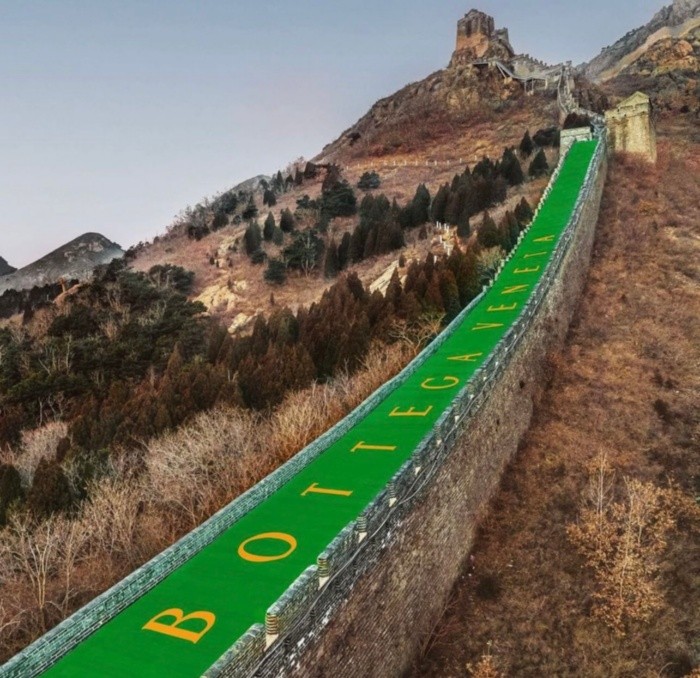 La gran muralla china se ha pintado con el 'Bottega Green' de la firma italiana en una instalación monumental a propósito del año nuevo chino, que da inicio el 1 de febrero y de acuerdo al horóscopo corresponde al tigre de agua.En una pantalla digital que pareciera la alfombra más larga que hayamos visto, se dibuja el mensaje de 新春快乐("Feliz Año Nuevo") sobre esta emblemática construcción con más de 2000 años de historia en los cuales solo han tenido presencia dos firmas de moda: Fendi, con un desfile en 2007 y ahora 14 años después, Bottega Veneta bajo la dirección creativa de Matthieu Blazy.Con una combinación de colores que representa el símbolo de la suerte chino, esta activación que recuerda a un tipo de Land Art en patrimonios históricos se suma a otra de las disruptivas y novedosas estrategias de marketing de la marca, comunes desde años atrás con Daniel Lee, quien presentó en 2020 la 'Invisible Store', una estructura temporal colocada en un centro comercial de Shanghái que se camuflaba a través de un juego de espejos; ocultándose a la vista como una metáfora de elegancia y discreción frente al resto de las tiendas.Además de la atípica celebración, la casa de moda se ha comprometido a realizar una importante donación para el cuidado y mantenimiento del "paso Shanghái", el bastión oriental de la muralla, conocido históricamente como "Primer paso bajo el cielo".Dado lo valiosa que resulta la economía china para la industria de la moda y los artículos de lujo, no es de sorprender que las marcas más importantes del mundo quieran estar presentes en las celebraciones del año nuevo lunar. Tan es así que Gucci, Versace y Balenciaga, lanzaron recientemente colecciones cápsula con temática de tigres, mientras que Prada ha lanzado una campaña benéfica llamada "Acción en el año del tigre", enfocada a la preservación y cuidado de este animal.Tras esta instalación temporal, Bottega Veneta se coloca como una de las únicas dos marcas que ha tenido presencia en este emblemático lugar, considerado una de las maravillas del mundo y nombrado patrimonio cultural de la humanidad desde 1987.La instalación tan monumental como temporal, estuvo disponible hasta el 12 de enero, aunque seguramente, las llamativas imágenes de la Gran Muralla China con alfombra 'Bottega Green' permanecerán en nuestra memoria por unos meses más. El Año Nuevo Lunar inicia el martes 1 de febrero y de acuerdo con el horóscopo chino, será el año del Tigre, conocido como la mayor de las bestias en China. El tigre representa fuerza, valentía y el fin de los males; incluso dentro de la cultura china este animal se usa para espantar a la mala suerte.新春快乐 "Feliz Año Nuevo"
