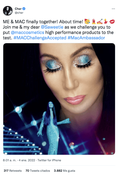 MAC Cosmetic ha anunciado esta mañana su más reciente campaña con las cantantes Cher y Saweetie como protagonistas del nuevo challenge que invita a todos los seguidores de la marca a que pongan a prueba su maquillaje favorito contra el agua, calor o incluso el sudor y compartan los resultados con el hashtag #macchallengeaccepted, pues de acuerdo a MAC, sus fórmulas altamente pigmentadas y de calidad son resistentes a la transferencia e impermeables, por lo que se mantendrán sin problema durante todo el día."Cuando un ícono moderno se encuentra con una leyenda viviente… La magia M · A · C ocurre Destellos. @Cher y @Saweetie unen fuerzas por primera vez y tienen un desafío para ti. Prepárate"La campaña lanzada el día de hoy, resulta la última de la rapera Saweetie con MAC cosmetics, desde que se convirtiera en embajadora de la marca en septiembre del 2021. Con 28 años y algunos éxitos mundiales como "Best Friend" a lado de Doja Cat, "My Type" e "Icy Grl", la gente se pregunta porque Saweetie aún no ha lanzado su álbum, a lo que la cantante ha respondido que está trabajando para finalmente estrenar uno este año."Cher y Saweetie saben que el rendimiento lo es todo ... Y nosotros también. ¿Estás lista para que superemos todas tus expectativas de maquillaje?" CP