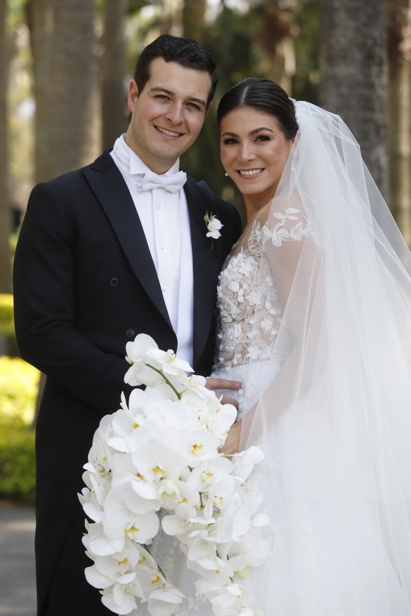 Mónica Magaña y Sergio Salinas unieron sus vidas en matrimonio con una linda ceremonia religiosa en la Capilla de la Finca San Javier, oficiada por el obispo Óscar Campos, la cual estuvo amenizada por el coro Benedectus.Acompañados por sus papás, Ismael Felipe Magaña y Raquel Mendoza, Sergio Salinas y Mayra Escutia, familiares y amigos, la pareja disfrutó de un momento inolvidable, por lo que para celebrar organizaron una gran fiesta junto al wedding planner Nelson Pardo.El lugar lució una decoración elegante, pues la finca francesa del siglo XVII se vistió con candiles volados, aros de cristal y flores, además de un entarimado en alfombra blanca.Para recibir a los invitados se ofreció un coctel con música de Paloma Guirardo, junk bar, piernas de jabugo y un torcedor de puros. Durante la cena se escuchó la música de los Poker Jazz, y de postre, hubo un candy bar, para bailar todos se divirtieron con la música del DJ Robbie. Para la cena de desvelados se sirvieron tacos de barbacoa.El momento esperado fue cuando los recién casados bailaron el tema Fascinación de Carlos Rivera como su primera pieza de baile como esposos.Mónica lució un vestido de Daalarna Couture, un ramo de orquídeas, aretes de su mejor amiga Gaby González, zapatos de Jimmy Choo, velo bordado con iniciales y fecha y tocado de Lourdes Escanes.Mónica y Sergio se conocieron en una cabalgata en el rancho de un amigo, al año de novios se comprometieron, ahora la pareja ya disfruta de su luna de miel en Bali, Japón y Singapur.AD