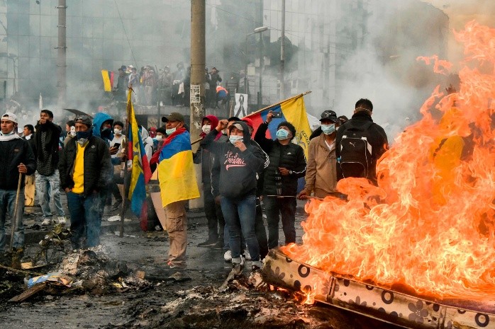 El dirigente del movimiento indígena de Ecuador, Jaime Vargas, pidió este domingo al presidente Lenín Moreno que derogue el decreto 883, que elimina el subsidio a las gasolinas, porque si eso no se cumple "seguiremos firmes y unidos" con el "compromiso inclaudicable de defender a nuestro pueblo"."Está en sus manos Sr. Presidente recuperar la patria. Tenemos bajo nuestra responsabilidad la dignidad de un país que nos reconoce como su legítimo interlocutor. ¡No vamos a negociar esa dignidad, no vamos a negociar a nuestros caídos!", dijo Vargas en su comparecencia en la mesa de diálogo inaugurada hoy a unos 20 kilómetros de Quito.Vargas agregó que "esperamos que hoy se encuentre una solución definitiva y duradera", a la vez que recordaron que debe ser eliminado el decreto que eliminó el subsidio a las gasolinas y desató la actual ola de violencia. Ecuador cumple este domingo 11 días desde que se desataran las manifestaciones contra el incremento de los precios de los combustibles, que forma parte de las condiciones de un acuerdo crediticio con el Fondo Monetario Internacional (FMI). De forma paralela, las violentas protestas que tuvieron lugar en el centro de Quito hasta el sábado se reanudaron esta tarde en las inmediaciones del parque El Arbolito, donde se ubica el Ágora de la Casa de la Cultura Ecuatoriana, lugar de concentración de la fuerza indígena.La Policía ha tenido que usar abundante gas lacrimógeno para repeler las protestas y cumplir el estado de "toque de queda" aplicado desde la tarde del sábado en Quito por el Gobierno, que no se ha cumplido de forma cabal.IM
