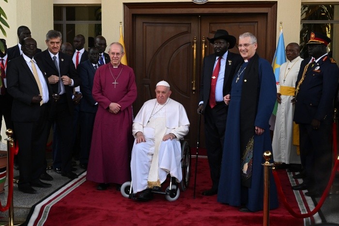 El Papa Francisco llegó hoy a Yuba y, en su primer discurso, urgió a los líderes de Sudán del Sur a que se dejen de acusaciones recíprocas y cumplan las promesas alcanzadas en el acuerdo de paz, en un país "que llora por la violencia, la pobreza y los desastres naturales que lo atormentan"."Vengo como peregrino de reconciliación, con el sueño de acompañarlos en su camino de paz, un camino tortuoso, pero que ya no puede ser postergado", se presentó el Papa a las autoridades del país en el jardín del palacio presidencial tras haberse reunido con el presidente sursudanés, Salva Kiir Mayardit, y el líder opositor y vicepresidente del Gobierno de unidad nacional, Riek Machar.Francisco, que llegó procedente de la República democrática del Congo, está acompañado en esta visita por el líder de la Iglesia anglicana, el arzobispo de Canterbury, Justin Welby, y el moderador de la Iglesia de Escocia, Iain Greenshields, pues el país cuenta con una importante presencia de protestantes."Nos hemos embarcado en esta peregrinación ecuménica de paz después de haber escuchado el grito de todo un pueblo que, con gran dignidad, llora por la violencia que sufre, por la constante inseguridad, por la pobreza que lo golpea y por los desastres naturales que lo atormentan", dijo el Papa en un duro llamamiento.Y lamentó que "son años de guerras y conflictos que parecen no tener fin -recientemente se han registrado violentos enfrentamientos- mientras que los procesos de reconciliación y las promesas de paz permanecen incumplidas", en referencia al acuerdo de 2018, firmado tras años de guerra que han dejado más de 400 mil muertos, pero que está costando implementar plenamente."Ustedes están llamados a regenerar la vida social, como fuentes límpidas de prosperidad y de paz, porque esto es lo que necesitan los hijos de Sudán del Sur: padres, no patrones; pasos decididos hacia el desarrollo, no continuas caídas", les recriminó el Papa.Y agregó: "Ha llegado la hora de decir basta, sin condiciones y sin peros. Basta ya de sangre derramada, basta de conflictos, basta de agresiones y acusaciones recíprocas sobre quién ha sido culpable, basta de dejar al pueblo sediento de paz. Basta de destrucción, es la hora de la construcción. Hay que dejar atrás el tiempo de la guerra y propiciar un tiempo de paz".También les indicó que es fundamental el desarrollo democrático, después de que se hayan aplazado la convocatoria de elecciones en varias ocasiones."Es hora de pasar de las palabras a los hechos. El proceso de paz y de reconciliación requieren un nuevo impulso. Que se entienda y se lleve adelante el acuerdo de paz, así como la hoja de ruta", reiteró Francisco, que en 2019 convocó a los líderes sursudaneses en el Vaticano para impulsar la reconciliación.Francisco también instó a dar mayor espacio a las mujeres y "a que haya respeto hacia ellas, porque quien comete violencia contra una mujer, la comete contra Dios" y a que haya educación para los niños.También pidió, en una nación donde más de seis millones de personas viven gracias a la ayuda internacional, que se garantice la seguridad de los cooperantes, pues es uno de los países más peligrosos para ellos y de los 60 asesinados en el mundo en 2022, 16 murieron en Sudán del Sur.Respecto a las catástrofes naturales que asolan el país, como las fuertes inundaciones que causan cada año cientos de víctimas, el Papa llamó a "combatir la deforestación causada por el afán de conseguir más ganancias" y también destacó la necesidad de luchar contra la corrupción.Clamó además contra el tráfico de armas "que, a pesar de las prohibiciones, continúan llegando a muchos países de la zona y también a Sudán del Sur"."Aquí se necesitan muchas cosas, pero ciertamente no hay ninguna necesidad de más instrumentos de muerte", agregó.Francisco justificó su duro discurso: "Sé que algunas de mis expresiones pueden haber sido francas y directas, pero les ruego que crean que esto nace sólo del afecto y de la preocupación con la que sigo vuestras vicisitudes, junto a los hermanos con los que he venido hoy aquí como peregrino de paz".JM