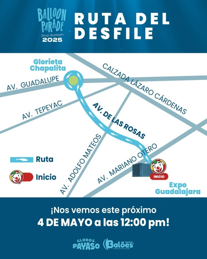 El desfile más grande del mundo, el Balloon Parade 2025 llegará por primera vez a la Perla Tapatía el próximo domingo 4 de mayo como parte de las celebraciones por el 75 aniversario de Globos Payaso.Este año, el desfile más esperado por chicos y grandes llega con una temática que promete deslumbrar: “El fondo del mar”, prepárate para un espectáculo único donde enormes carrozas decoradas completamente con globos darán vida a criaturas marinas y paisajes oceánicos salidos de un sueño.Detrás de esta magia inflada están 12 artistas internacionales que llegan desde: Brasil, Italia, México, Rusia, Taiwán y Hong Kong, listos para transformar las calles tapatías en un océano de arte y asombro.El Balloon Parade 2025 comenzará a partir de las 12:00 hasta las 2:00 pm, así que ve agregando el evento a tu agenda y pepárate para vivir una experiencia única que combina arte, creatividad y fantasía en un ambiente familiar lleno de color. De acuerdo con lo informado por Globos Payaso en sus redes sociales el desfile tendrá la siguiente ruta el próximo 4 de mayo: saldrá desde la Expo Guadalajara y avanzará sobre Avenida de las Rosas, cruzando por las avenidas Mariano Otero, Adolfo Mateos, Tepeyac y Guadalupe, hasta llegar a la Glorieta Chapalita. ¿Te imaginas caminar entre medusas, peces gigantes y corales brillantes? Pues a partir del 30 de abril al 3 de mayo, podrás tener la oportunidad de ver cómo cobra vida este mágico desfile, ya que las esculturas de globos serán construidas en tiempo real dentro de la Expo Guadalajara.Según el sitio oficial del Balloon Parade 2025: “Accede a todas las actividades durante los 4 días de construcción de la carroza, además podrán asistir a la fiesta de clausura y el desfile final. La organización del evento únicamente habilitará 200 cupos para este evento,” para inscribirte puedes hacerlo a través de la misma página donde podrás conocer más detalles.