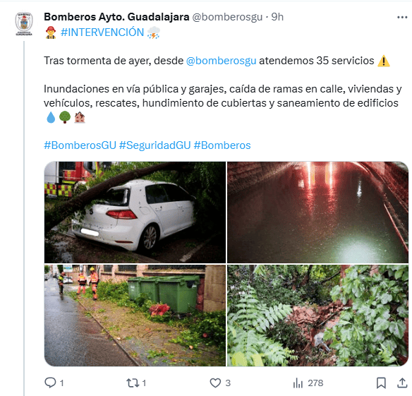 En la noche del miércoles 11 de junio se registró una tormenta intensa con actividad eléctrica que provocó diversas afectaciones en distintos puntos del Área Metropolitana de Guadalajara (AMG), al igual que en otros municipios del estado de Jalisco. Aquí un recuento de las afectaciones.A través de su cuenta de X (antes Twitter) Protección Civil y Bomberos de Zapopan informó que debido a la precipitación que comenzó en la noche del miércoles, sus oficiales fueron desplegados en varias zonas que presentaron inundaciones, vehículos varados y árboles caídos.De acuerdo con el reporte, los puntos con mayores afectaciones fueron:Ante el aumento del nivel de agua en López Mateos, a la altura de Bugambilias, personal de la Policía Vial de Jalisco realizó labores de limpieza en boca de tormenta para liberar la circulación. Además, en el punto de las avenidas López Mateos y Tezozómoc hubo una inundación que alcanzó casi el metro de altura.De acuerdo con las autoridades, en Zapopan se atendieron 23 vehículos afectados por las inundaciones y se reportaron 5 árboles caidos.Debido al reblandecimiento de un cerro por la lluvia en Camino a Colimilla y Pedro Moreno, en la colonia La Noria, unas piedras se desprendieron y golpearon a un menor de 12 años que viajaba en una camioneta Ram tipo pick up, ocasionándole la muerte.Por este motivo, se informó del cierre de acceso a la Barranca de Colimilla hasta eliminar los riesgos por el reblandecimiento. El Cuerpo de Bomberos del Ayuntamiento de Guadalajara dio a conocer que tras la tormenta atendieron 35 servicios. Se registraron inundaciones en vía pública y garajes, caída de ramas en calle, viviendas y vehículos, rescates y hundimientos de cubiertas. Un video difundido en redes sociales evidenció la fuerza en que la lluvia de anoche azotó al municipio de Tequila. En las imágenes se puede apreciar cómo el viento levanta un puesto, llevándose una carpa y arrastrando sillas, mientras las personas que atestiguaron la escena gritan sorprendidas y buscan refugio. En Ocotlán se registraron fuertes inundaciones, por lo que algunos vecinos de la zona decidieron darse un chapuzón. Hasta el momento, las autoridades de otros municipios no han presentado un corte definitivo de las afectaciones por la lluvia de ayer.* * * Mantente al día con las noticias, únete a nuestro canal de WhatsApp * * *MB