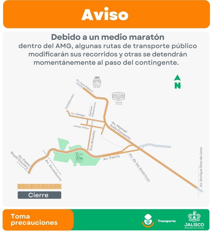 Con motivo del Medio Maratón en Zapopan, el 18 de mayo varias rutas de transporte público modificarán sus derroteros