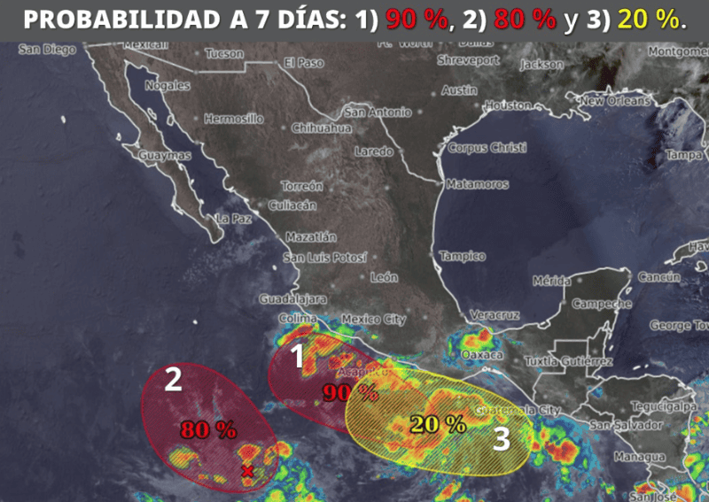 Se espera que dos ciclones tropicales se formen este fin de semana en la cuenca del Pacífico mexicano. ESPECIAL / CANVA