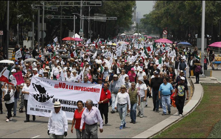 Desde las 10 horas de este domingo 1 de junio, decenas de manifestantes se agruparon en el Ángel de la Independencia para protestar contra la elección judicial que se lleva a cabo en todo el país."Para México cuidar, no iremos a votar", aseguran mientras extienden banderas, carteles con las frases: "Fraude electoral, México reclama justicia", "Guadalupe Taddei, delincuente electoral" y "sí al Estado de Derecho, no al socialismo narco-terrorista".Vestidos de blanco y con moños negros, personas juzgadoras y ciudadanía en general esperan que más se sumen para mostrar el rechazo a la reforma judicial aprobada por Morena y sus aliados, impulsada por el expresidente Andrés Manuel López Obrador y respaldada por la Presidenta Claudia Sheinbaum.Paralelo a la concentración de ciclistas en honor al ciclista mexicano Isaac del Toro, que se ha desempeñado de forma notoria en el Giro de Italia 2025; protestantes bautizaron este día como "domingo negro" y esperan avanzar en Paseo de la Reforma hacia el Zócalo Capitalino."La justicia no se vota, no puedes votar a un juez porque entonces le quitas su imparcialidad y se debe a quien lo postuló, eso no se vale. Le quitaron la independencia al Poder Judicial (…) nos sentimos indefensos, pisoteando nuestro Estado de derecho. Cada vez estamos peor", opina Diana rumbo a la anti marcha judicial.Al exigir "Fuera Morena" y "No al fraude judicial", a las 11:20 de este domingo, colectivos, estudiantes de Derecho, activistas y personas juzgadoras comenzaron la manifestación pacífica contra la elección de jueces, magistrados y ministros."Dieron un golpe de Estado al Poder Judicial de la Federación. Todo por el desgraciado de (Arturo) Zaldívar, el traidor de Zaldívar y el loco de Andrés Manuel López Obrador, ese narcotraficante que nos vendió y dio el país al narcotráfico. La tiene que pagar y los vamos a meter a la cárcel. Cárcel para López Obrador, cárcel para Mario Delgado, cárcel para Claudia Sheinbaum", aseguró un protestante durante un mitin político.Agregaron que en más de 50 ciudades del país se movilizan con el mismo fin y para exigir un alto al "crimen de estado" que simboliza eliminar la carrera judicial y elegir por voto popular a juzgadores.Por otro lado, estudiantes y profesores de la Universidad Nacional Autónoma de México (UNAM) gritan un Goya durante la manifestación en contra de la elección judicial y Morena, al pasar por el Senado de la República, donde también dedicaron insultos al presidente de la Mesa Directiva, Gerardo Fernández Noroña.*Mantente al día con las noticias, únete a nuestro canal de WhatsApp aquí: https://whatsapp.com/channel/0029VaAf9Pu9hXF1EJ561i03 MV