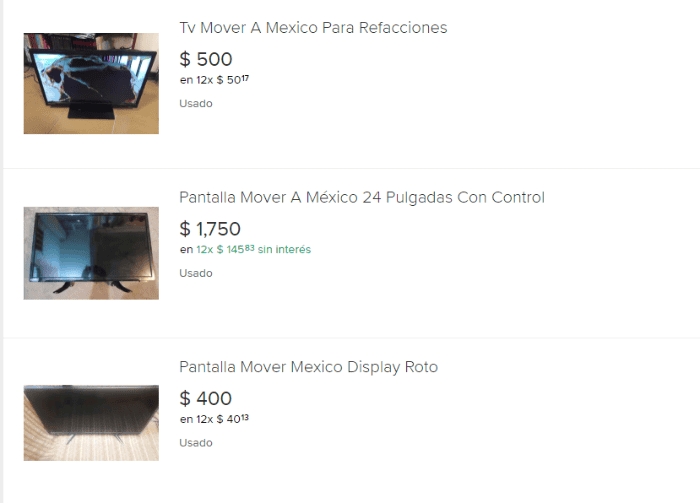 Pantallas que se entregaron durante la administración de Enrique Peña Nieto bajo el lema "Mover a México", se pueden encontrar a la venta en la plataforma de Mercado Libre. El programa que otorgaba televisores digitales a las familias de bajos recursos inscritas en alguno de los programas sociales, tenía como objetivo que los hogares no se quedaran sin señal cuando se llevó a cabo el apagón analógico en el país.Ahora algunas de estas pantallas se ofertan en precios de mil 450 pesos, mil 500 pesos y mil 750 pesos, aunque también hay algunas que se venden y están rotas por lo que su precio oscila los 400 pesos.Fue durante el año 2015 cuando el gobierno federal decidió entregar las televisiones ante el apagón analógico concretado en 2016.En ese momento la Secretaría de Comunicaciones y Transportes (SCT) entregó alrededor de 10 millones de televisiones a un listado de personas derivado de los programas sociales de la entonces Sedesol.NR