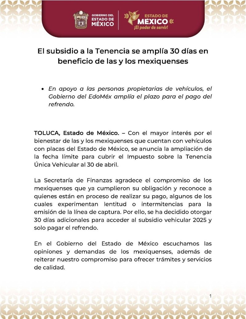 Edomex ofrece subsidio de tenencia, condonaciones y pagos sin intereses