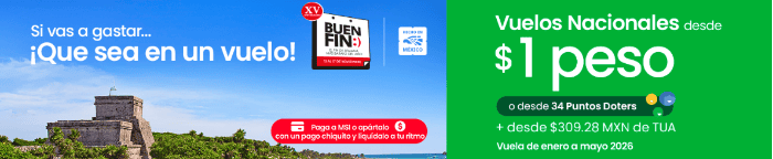 Estas promociones solo aplican para vuelos nacionales saliendo desde ciudades como: Acapulco, Cancún, Ciudad de México (AICM/AIFA), Chetumal, Chihuahua, Ciudad Juárez, Ciudad Obregón, Cozumel Culiacán, Durango, Guadalajara, Hermosillo, Huatulco, Ixtapa Zihuatanejo, La Paz, León, Bajío, Los Cabos, Puerto Vallarta y más.