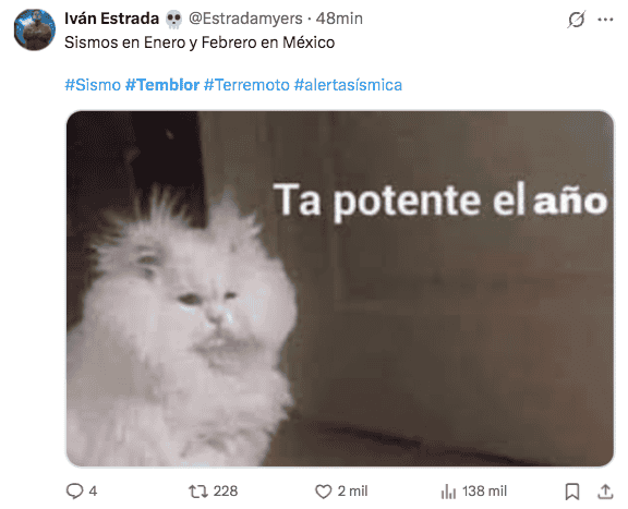 La tarde del domingo 8 de febrero, un sismo de magnitud 5.7 sacudió el estado de Oaxaca, con epicentro a 19 kilómetros al noreste de Puerto Escondido, lo que activó de inmediato la alerta sísmica y generó una ola de reacciones tanto en las calles como en redes sociales.El movimiento telúrico, registrado a las 15:42 horas con una profundidad estimada de 10 kilómetros (coordenadas 15.98, -96.94), provocó la activación automática de alertas en miles de teléfonos celulares, permitiendo que la población contara con unos segundos de advertencia antes del movimiento principal. Las redes, una vez más, se convirtieron en un reflejo del pulso social: entre la preocupación y el alivio, aparecieron también memes y comentarios humorísticos que rápidamente se viralizaron.Varios internautas mencionaron que el sonido de las alertas en sus teléfonos les provocó susto e incertidumbre, mientras otros optaron por tomárselo con humor y hacer del momento una anécdota más de la vida sísmica en México. Aunque el temblor generó una fuerte conversación digital y algunos sobresaltos, hasta el momento no se han reportaron daños significativos. Las autoridades locales exhortaron a la ciudadanía a mantener la calma, seguir las indicaciones de Protección Civil y permanecer atentos ante posibles réplicas. EE