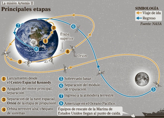 Artemis II concluyó este lunes el periodo de observación lunar, la etapa crucial de la misión, en la que en menos de siete horas marcó varios hitos, como el récord de la mayor distancia a la que ha viajado una tripulación en el espacio y la observación de la cara oculta de la Luna.Los cuatro astronautas del equipo, en el sexto de un total de diez días de misión, concluyeron la observación a las 21:30 horas del este de Estados Unidos (19:30 horas de México), por lo que esperan abandonar este martes la esfera de influencia de la Luna a las 13:25 horas del este (11:25 horas de México) para volver a la Tierra el próximo viernes.Al pasar detrás de la Luna, los astronautas de Artemis II —el comandante Reid Wiseman, el piloto Victor Glover y la especialista Christina Koch, de la NASA, así como Jeremy Hansen, de la Agencia Espacial Canadiense— estudiaron la cara oculta mediante fotografías y la observación directa a través de las ventanas de la cápsula.En este periodo, los tripulantes perdieron las comunicaciones con el centro de control de la NASA en Houston (Texas) durante 40 minutos, desde las 18:44 horas del este de Estados Unidos (16:44 horas de México), debido a que la Luna se interpuso entre la nave espacial Orión y la Tierra, tal como estaba previsto.Durante ese lapso de incomunicación, los astronautas alcanzaron la mayor distancia respecto a la Tierra: un récord de 406,771 kilómetros (252,756 millas), más que cualquier otra tripulación, así como el punto más cercano a la Luna de la misión, a unos 6,545 kilómetros (4,067 millas) desde la nave hasta la superficie.La tripulación informó a la NASA sobre matices de color, lo que ayudará a mejorar la comprensión científica de la Luna, ya que tonos de marrón y azul, perceptibles a corta distancia, contribuyen a revelar la composición mineral característica y su antigüedad.Incluso, la tripulación observó un eclipse solar total de 53 minutos de duración, un fenómeno que no fue visible desde la Tierra debido a la posición de la Luna durante el paso de la nave.Artemis II despegó el pasado miércoles desde Cabo Cañaveral (Florida) para una misión de diez días que marcó el regreso del ser humano a la órbita lunar después de medio siglo y que busca sentar las bases para una presencia permanente de Estados Unidos en la Luna, así como para la futura exploración humana de Marte.SV
